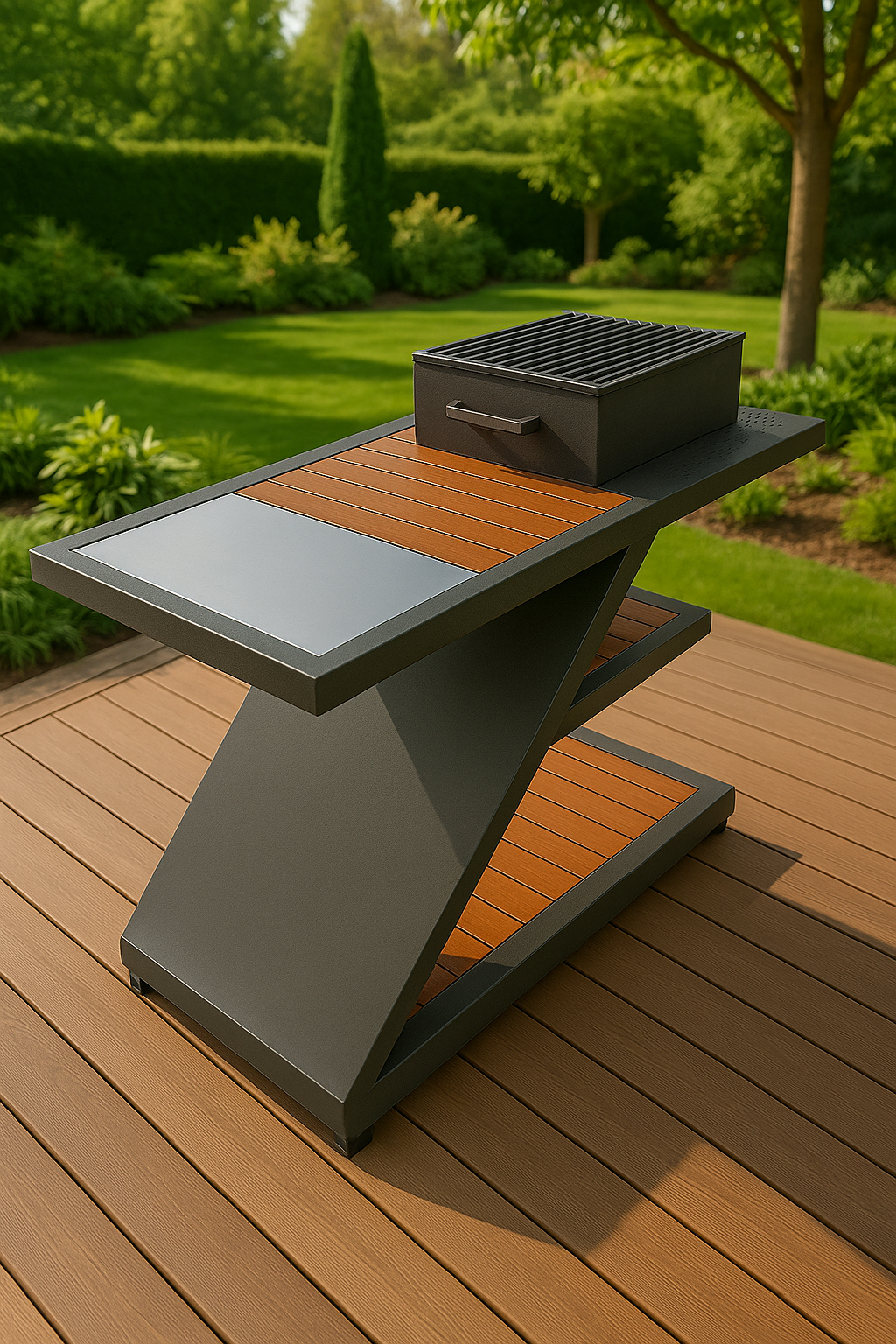 A Zefiro grill a formatervezés és funkcionalitás elegáns egyensúlya, amely egyaránt megszólítja a designkedvelőket és a gyakorlott kerti séfeket. Egyedülálló, „Z” alakú szerkezete modern karaktert ad a kültéri tereknek, miközben praktikus megoldásaival minden grillparti biztos alapja lesz.